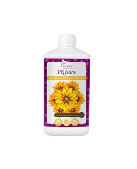 Organics Nutrients PK Juice je naravni pospeševalec rasti plodov in cvetov. Vsebuje optimalno količino fosforja 5%, kalija 8% in kalcija 5%. Vsebuje še morske alge, vitamine, minerale, encime in sladkorje, ki zagotavljajo velike in zdrave plodove. Rastline v času cvetenja potrebujejo fosfor in kalij za razvoj zdravih in velikih plodov  ter cvetov. PK Juice s svojo edinstveno formulo zagotavlja ključna hranila in omogoča rastlinam razvoj velikih plodov brez uporabe mineralnih gnojil.
